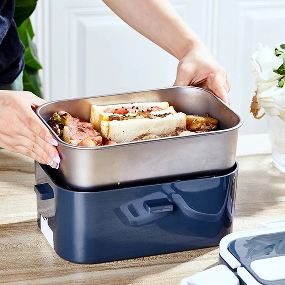 🍲 LARGE CAPACITY: Stainless steel large capacity container 1.6-2.0 liters, you don't need to worry about going hungry. Our electric bento box is perfect for you! In addition, we offer a 0.45 L plastic compartment so you can keep different types of food separate.